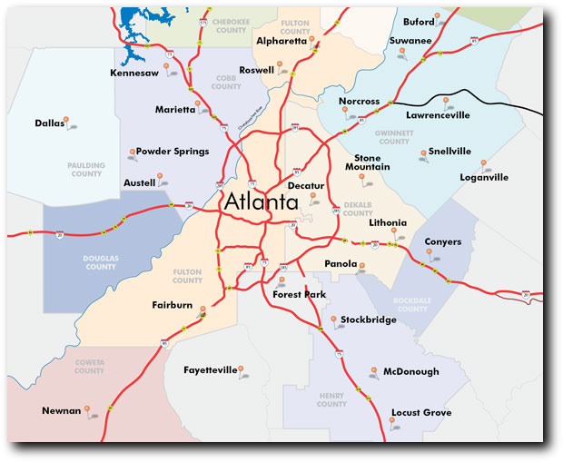 Atlanta Downtown, Atlanta Midtown and Atlanta Uptown, Marietta, Alpharetta , Roswell, Cumming, Woodstock, Stockbridge, Duluth, Lawrenceville, Smyrna, Conyers, Fayetville, Jonesboro, Fairburn, Buford, Decatur, Tucker, Lilburn, Norcross, Doraville, Snellville, Dunwwoody, Sandy Springs, Dacula, Stone Mountain, Lithonia, Sugar Hill, East Point, Union City, College Park, Buford, Buford, Suwannee, Berkely Lake, Chamblee, Buckhead, Kennesaw, Conyers, Ackworth, Powder Springs, Austell, Canton, McDonough, Loganville, Newnan, Flowery Branch, Mableton, Winder, Avondale, Forrest Park, Grayson, Hoschton, North Atlanta, South Atlanta.